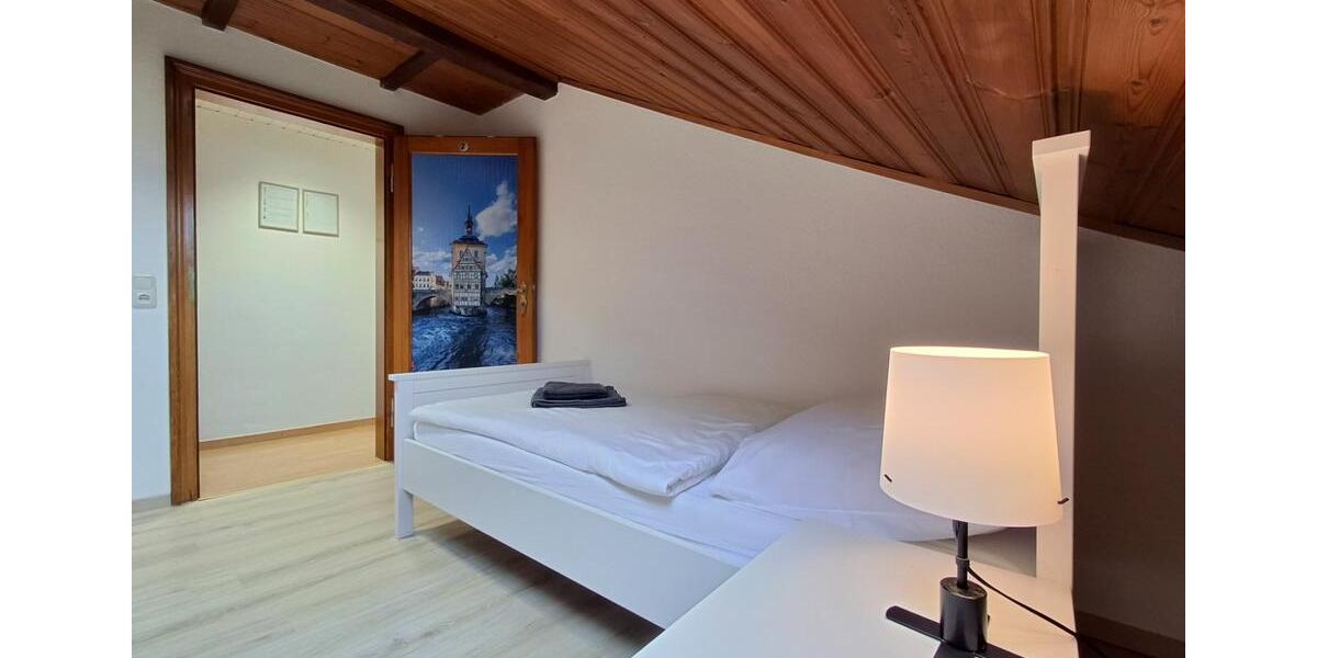 Die neu renovierte Ferienwohnung „Taube“ befindet sich in Schammelsdorf - 7 km östlich von der Weltkulturerbestadt Bamberg im Ellertal. Die Gegend zeichnet sich u. a. aus durch die größte Brauerei- und Metzgereidichte der Welt - Willkommen in der Genußregion Oberfranken! Die idyllische, ländliche Umgebung eignet sich ideal zum Wandern und Radfahren in der fränkischen Toskana. Motorradfahrern bietet es am Rande der Fränkischen Schweiz herrliche Bikerstrecken. Der 13-Brauereienweg zieht sich über 34 km durch liebliche Landschaften - also auch durch Schammelsdorf. Der Ort verfügt auch über eine dorfeigene Brauerei (350m zu Fuß) mit leckeren, fränkischen Spezialitäten. Darüber hinaus ist die Region für ihre zahlreichen Brauereien und Bierkeller bekannt, die zum Einkehren einladen. Die 100 qm-Wohnung im Obergeschoß verfügt über 3 Schlafzimmer mit 7 Schlafplätzen, eine große Wohnküche, Bad uns separates WC. Zur Ausstattung gehören TV, eine gut ausgestattete Küche, Gratis-WLAN, große Terrasse mit Grill, großer privater Parkplatz, Bettwäsche und Handtücher, die regelmäßig gewechselt werden. Die Wohnung ist für Familien mit Kindern und Langzeiturlaubern geeignet - zwei große Spielplätze, ein Sportplatz und ein Reitstall befinden sich in der Nähe. Hunde sind gegen einer Gebühr von 10 Euro pro Nacht erlaubt. Im Interesse aller ist das Rauchen in der Wohnung nicht gestattet. Zur Not kann das Sofa (80cm x 220cm) oder ein Klappbett noch von einer 7ten Person genutzt werden, gebt uns einfach Bescheid.